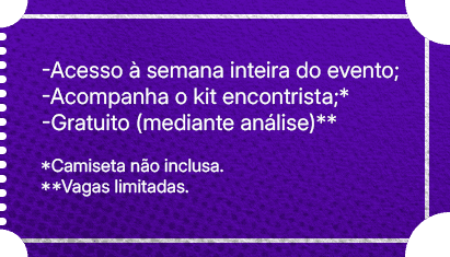 E para garantir que ninguém fique de fora, também oferecemos os nossos Ingressos Sociais, com acesso gratuito à semana completa e brindes especiais.