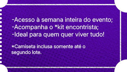Se você quer mergulhar de cabeça na SeIntegra durante toda a semana, o Pacote Encontrista é pra você - cheio de benefícios e brindes exclusivos.